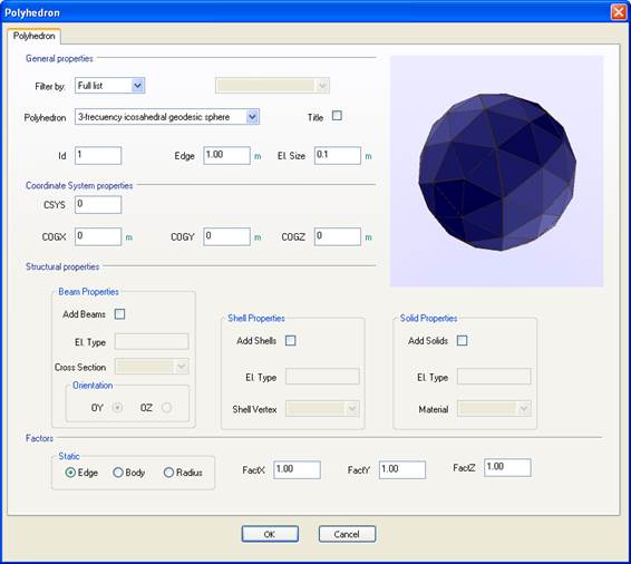 o Add Beams:      Creates beam elements on the polyhedron’s edges.