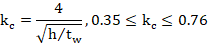 We assume that there are not stiffeners, therefore web plate buckling coefficient, Kv will be calculated as a constant equal to 5.0.
