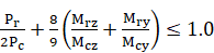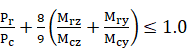 With the case of bending plus tension or bending plus compression, the interaction between flexure and axial force is limited by the following equations: