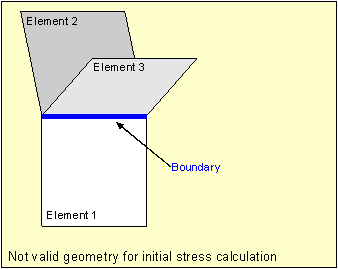 - In order to avoid incoherent results, an element should only have one single boundary element at each one of its boundary faces. If the model needs this kind of geometry (construction phases with birth and death of elements, for example) it is possible to create the Initial stresses file with part of the model (just the terrain elements) and afterwards create the rest of the elements.