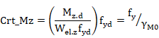 Para el cálculo de momento elástico crítico, Mcr, se emplea la expresión siguiente, válida únicamente para secciones simétricas con relación al eje menor de inercia (Anejo F, ENV 1993-1-1:2005). Eurocódigo 3 no da procedimiento para calcular este momento en secciones no simétricas o con simetría en otro plano (angulares, secciones en canal, etc.)