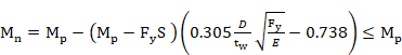 Para este chequeo, se necesita conocer primero el valor de Mn, ya que este valor está incluido en la formulación del chequeo. El valor de Mn, se calculará igual que en el apartado de piezas sometidas a esfuerzos flectores, es decir, el momento máximo resistente (Mn) es el mínimo de cuatro comprobaciones: