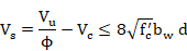 Si la sección está sometida a un esfuerzo de tracción tal que la tensión de tracción sea mayor que 500 psi, se toma Vc=0.