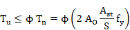 7) Calculo de la resistencia nominal a torsión. La resistencia a torsión (Tn) se evalúa mediante la expresión: