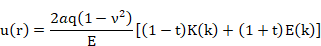 expresión en la que K y E son las integrales elípticas de primera y segunda especie,