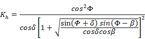 2. Cálculo de los coeficientes de empuje. Una vez calculado el ángulo a y a través de los valores definidos para el terreno, se obtienen los coeficientes de empuje, bien de la base de datos, o bien se calculan para el caso del empuje de Coulomb, siguiendo la teoría expuesta en el capítulo 17-A.4.5 Cálculo de los empujes sobre la pantalla