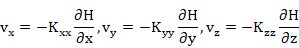 A partir de una topografía dada, las tensiones iniciales se calcularán mediante las expresiones: