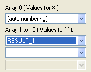 Lo primero que se debe hacer es elegir un vector con los valores para las X. En la lista desplegable “Array 0” aparecerán los nombres de las variables que tengan una dimensión (vectores) y sean de tipo array (no de tipo table). También existe la opción de numeración automática (auto-numbering) para las X, que asignaría los valores 1,2,3,4,5,...