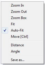 La parte derecha de la ventana es la zona de visualización, y posee el siguiente menú, emergente al pulsar el botón derecho del mouse: