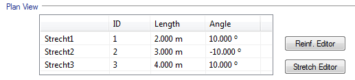 Stretch Editor: para definir los distintos tramos en planta de la pantalla, con sus longitudes y ángulos.