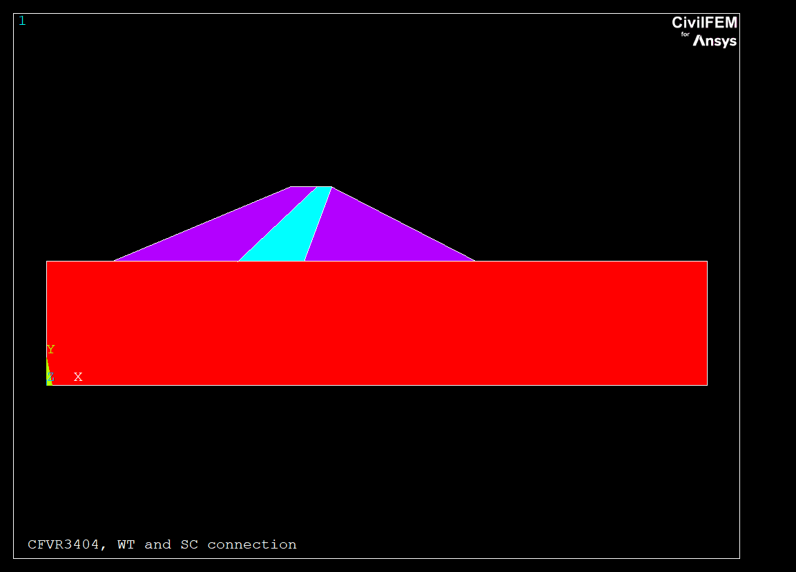 - Material 1. Clay type with 15300 N/m2 dry specific weight. Used for the dam's nucleus.
