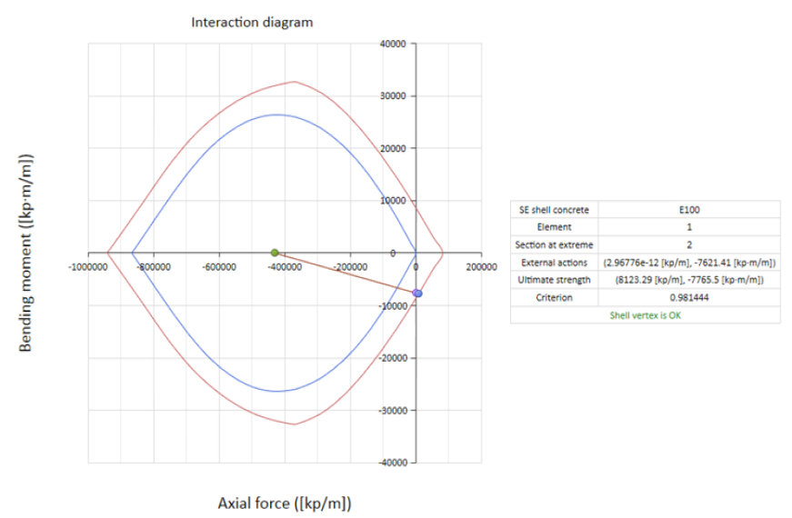 As shown in the diagram, the criterion is under 1, so the concrete shell withstands the working load.