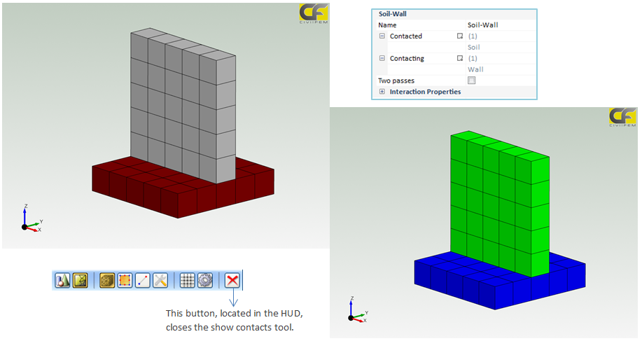 Green color is defined for the contacting elements while blue is assigned to the contacted elements.