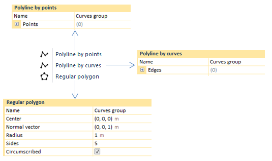 Regular polygon: the polyline is carried out through a regular polygon, either circumscribed or inscribed. A new "Curves group" would be created in the geometry entity.