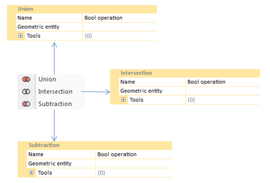 Boolean operation generates a new entity by subtracting the regions shared among them. Two entities are needed: the entity to subtract (tool) and the entity to be subtracted from (geometric entity).