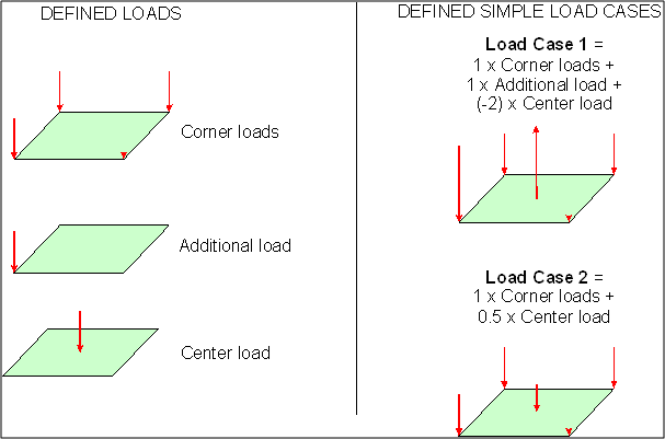 LoadCase1 = 1 x Corner Loads + 1 x Additional Loads – 2 x Center Load
