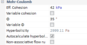 This soil has been modeled with the next scheme of Mohr-Coulomb parameters: