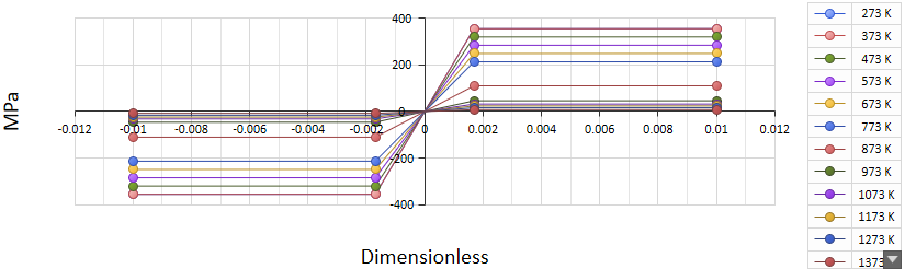 Moreover, the table may be changed by the user depending on their preferences or the model requirements. That is, not only the stresses may be modified, but also the Young modulus changing, as a result of that, the strains and the whole amount of stresses for all the temperatures.