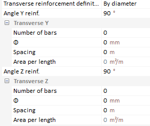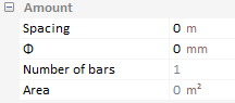 The reinforcement definition may be done by amount, number of bars or by separation.