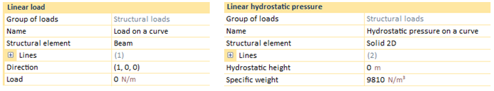 On the one hand, the linear load option is able to shape either linear loads or linear hydrostatic pressures. While a linear load is able to be applied over a line attached to a linear (truss or beam), a shell or even in a 2D and 3D solid structural element, the linear hydrostatic pressure will be only possible to be applied over 2D models, that is, only if the structural element is a linear one or a 2D solid.