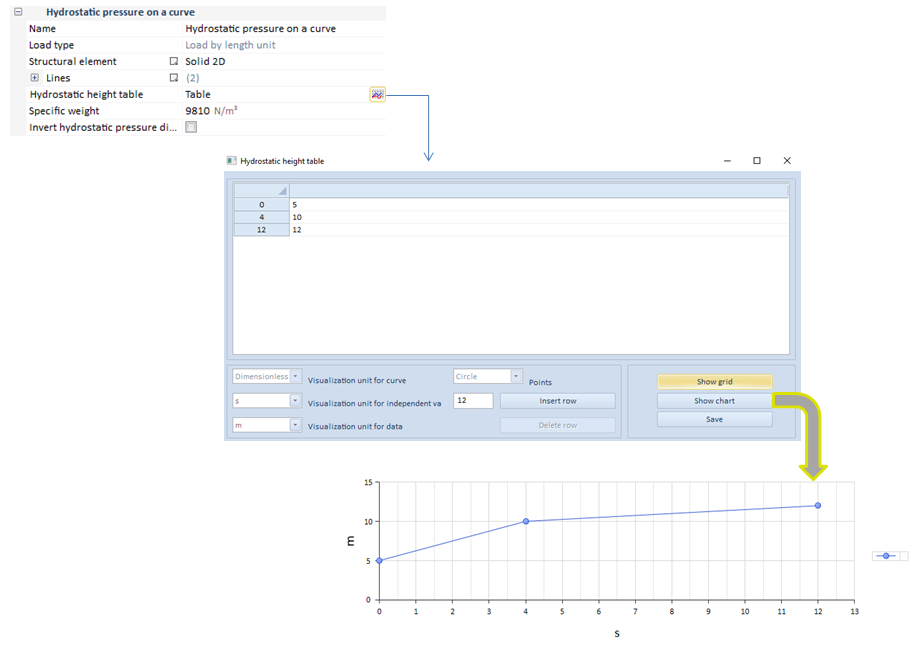 However, in respect with the linear hydrostatic pressure, this follows the same assumption than the linear load. That is, on a linear truss or beam structural elements, only a line will be accessible to be selected whereas, on a 2D solid, one or more lines that shape the structural element, could be attached.