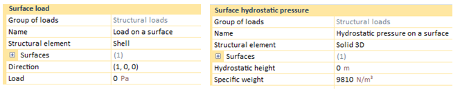 In regard to the surface load, if the current structural element is a shell, there will be only a surface over which the load can be applied. However, if the structural element is a solid, the user will be able to choose the surface in order to apply the load.