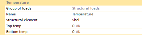 Structural temperature increment (C, F, K) can be defined in all structural elements. For shell structural elements the user can define different temperature increments on both top and bottom faces. The local Z axis of the shell element determines the top/bottom face. (Positive local z direction indicates the top face and negative indicates the bottom face).