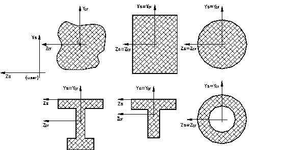 CivilFEM uses two coordinate systems in beam sections: the CivilFEM axis system (XCF, YCF, ZCF) and the section axes system (XS, YS, ZS).