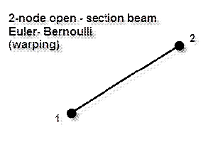 This is a simple, straight beam element that includes warping and twisting of the section. Primary warping effects are included, but twisting is assumed to be elastic.