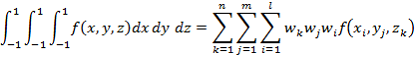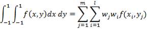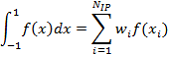 The standard 1-D numerical integration formulas which are used in the element library are of the form: