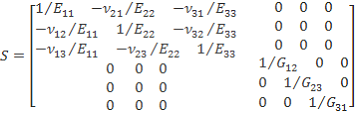 which for an orthotropic material can be expressed through the “engineering constants”: the three moduli , and Poisson’s ratios , and and the shear moduli , and associated with the material directions.