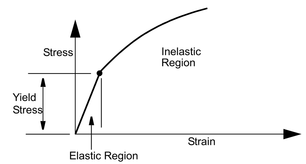 The yield stress of a material is a measured stress level that separates the elastic and inelastic behavior of the material.