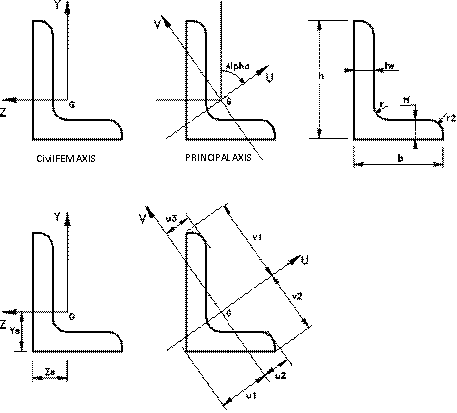 For the orientation of the cross sections of the shapes in the CivilFEM axis system, the center of gravity of the section coincides with the origin of these axes and the shape of the web is parallel to the CivilFEM Y axis.