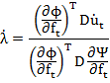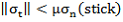 Next, the rate of the relative tangential displacement vector is split into an elastic (stick) and a plastic (slip) contribution according to: