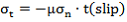 First, Coulomb’s law for friction is expressed by a slip surface φ: