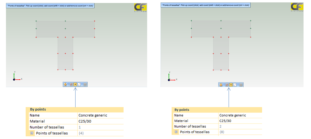 To perform this, it will be only necessary to create a new concrete material, along with the definition of the points of the tessellas of this new section. Every tessella will be shaped by four points, therefore the will be only necessary to click on them so as to define the tessellate.