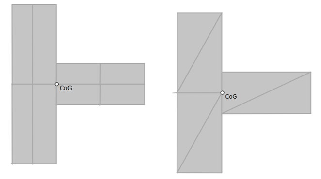 The quadrilateral segments must describe a simply connected region; i.e., there must be no holes in the section, and the section cannot be composed of unconnected “islands” and should not be connected through a single point.