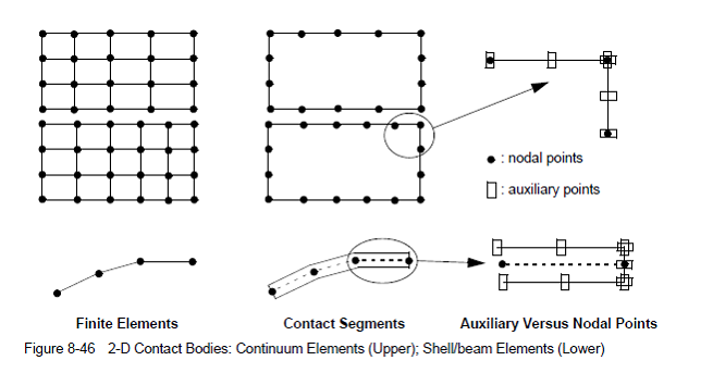 1. The nodes of the beam and truss elements can also come into contact with the faces of three-dimensional continuum elements or shell elements. The normal is based upon the normal of the element face.