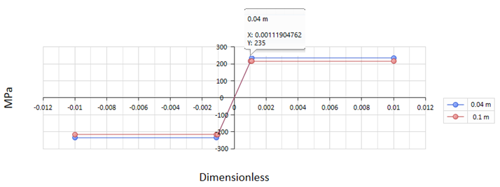 On the other hand, it would be available as well testing from which stress the beam starts plasticizing. This will be get comparing the von Mises stress with the total strain result.