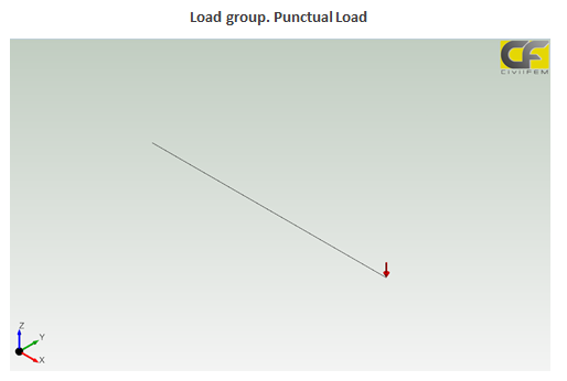 LoadGroup: punctual load of 1.0e7 N at the end of the beam. This load depends on time, that is, the model has been developed in a transient analysis. As a result of this, the load has been performed with a value of 0 at 0 seconds but 1e6 N at the end of the analysis.