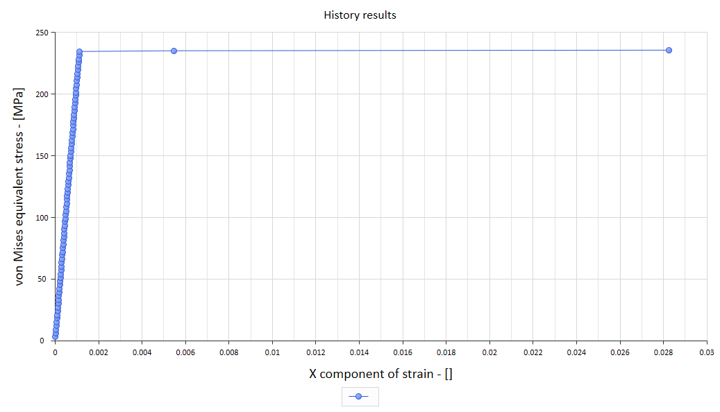 Once the Load Case has been performed, entering both the punctual load and the boundary conditions, the next step is solving the model. When results have been obtained, it is necessary to enter them on the history plot. The target would be trying to find out when the equivalent plastic strain defers from 0. This will be carried out comparing the equivalent plastic strain to time.