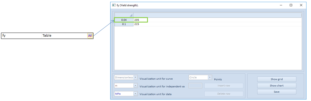 The yield strength would be 235 MPa, how the image shows in the chart. That is just the same value the material properties take into consideration for the yield stress "fy":