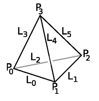 The tetrahedron edge lengths are denoted as follows: L0, L1, L2, L3, L4, L5