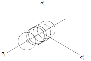 Prager’s law is used to define the translation of the yield surface in the stress space. On the other hand, the loading path of a uniaxial test is illustrated ahead: